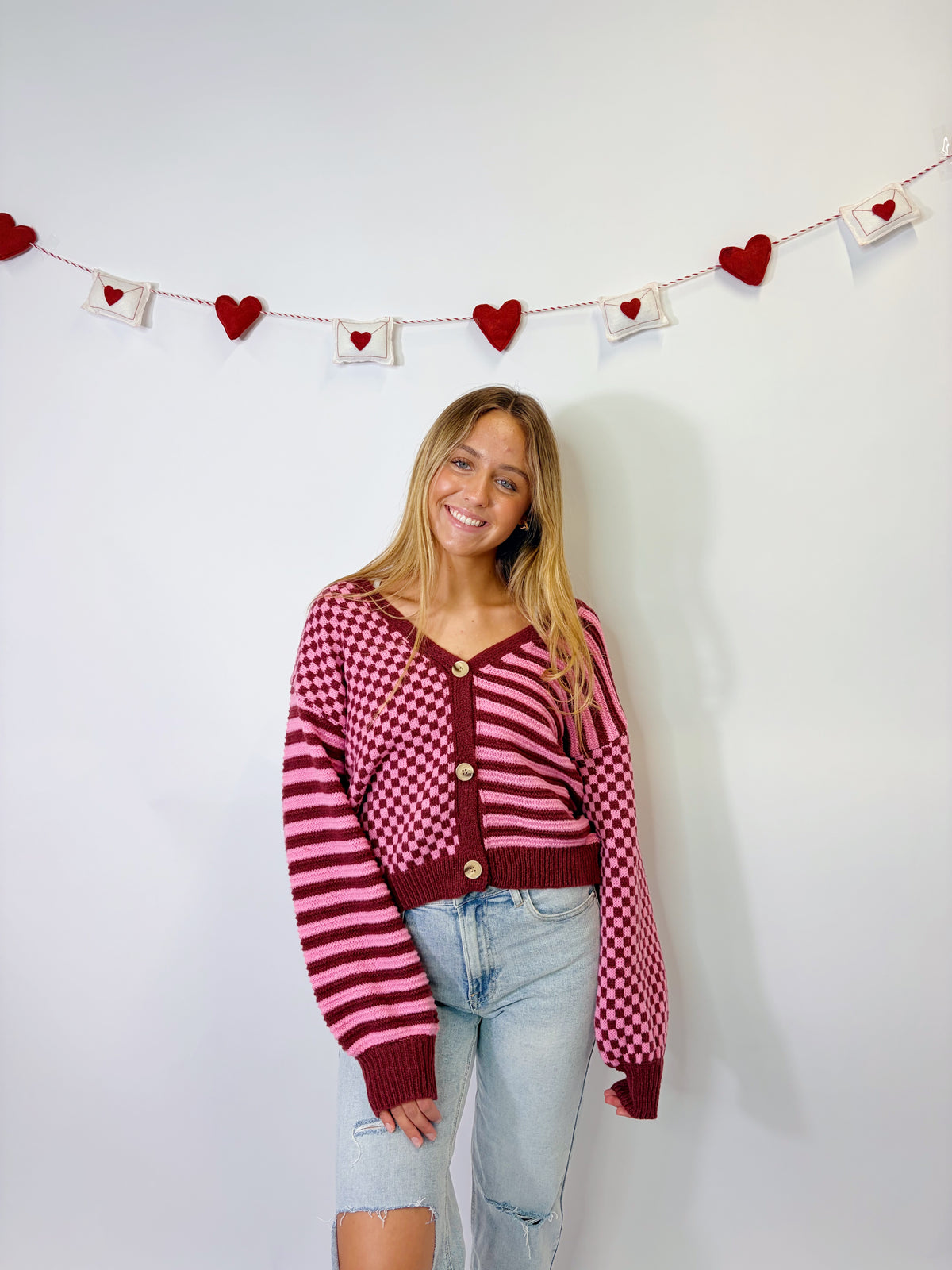 CHECKERED BUTTON DOWN CARDIGAN