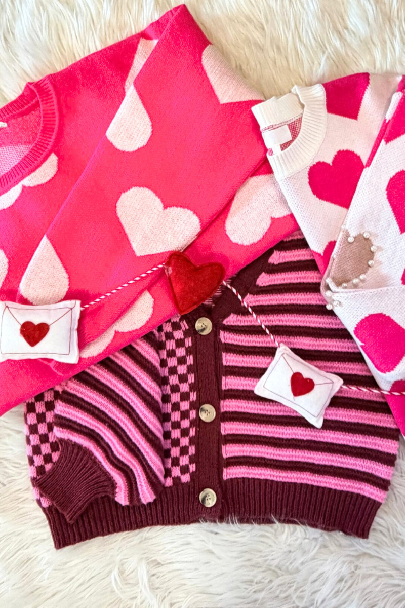 ROUND NECK HEART PRINT SWEATER